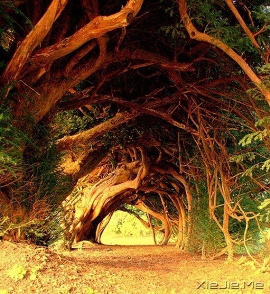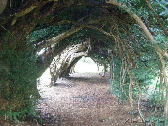 这条树隧道的紫杉树据信由18世纪的戴尔家族栽种,在英国独树一帜。长高之后,紫杉树的树枝勾连在一起,形成拱顶。随着时间的流逝,这些紫杉树相互缠绕在一起,现在已很难确定具体棵数。